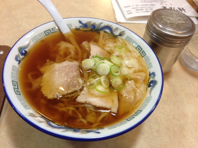 五目中華そばとワンタン麺が有名なのですが、今回はワンタン麺を注文。