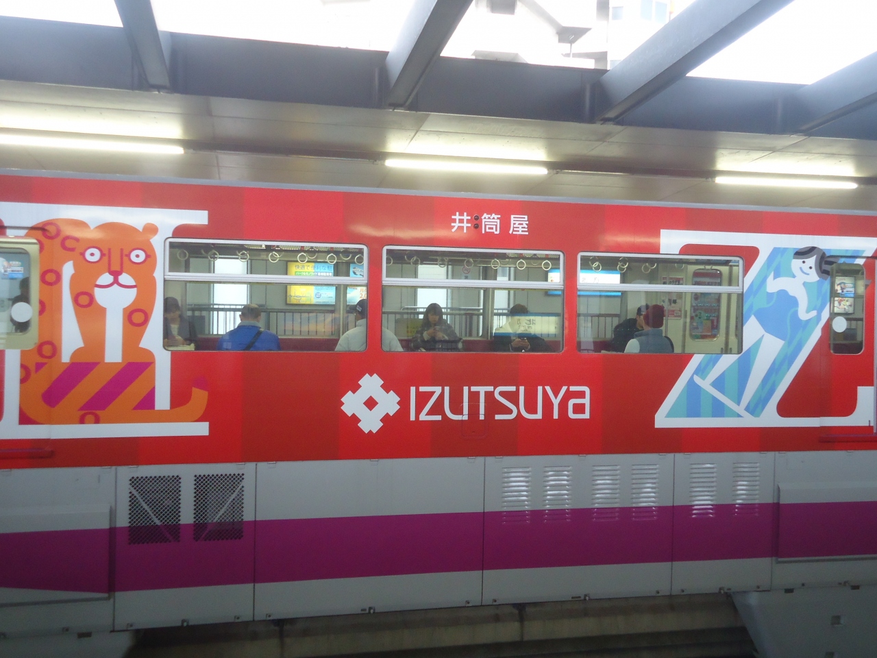 車両は同じ形式のようですが、井筒屋、北九州銀行と言った地元企業や銀河鉄道999(北九州は松本零士さんゆかりの地)のラッピングモノレールがあったり意外に面白い。