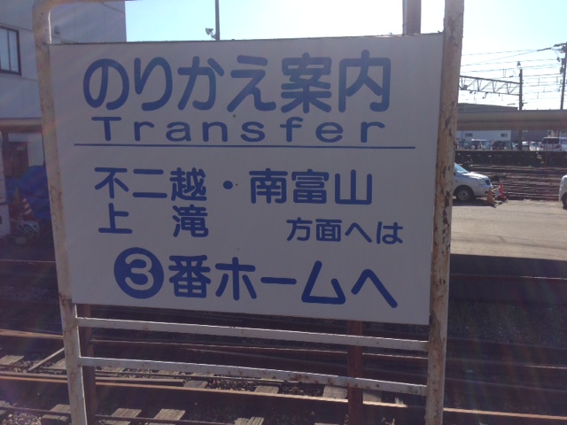 この駅で本線と不二越・上滝線が分かれます。電鉄富山からこの駅までは複線区間。電車の本数も地方鉄道としては多い方。