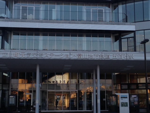 立山町の中心の駅らしく、駅前近辺には銀行や商店がちらほら。1時間に1本程度の電車が到着すると結構な乗降があります。