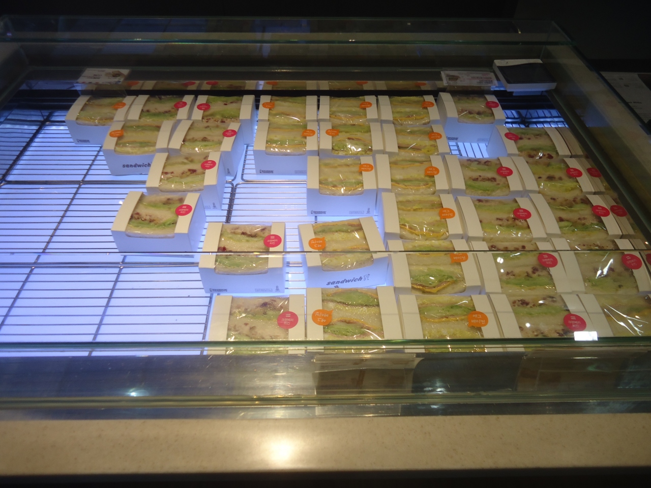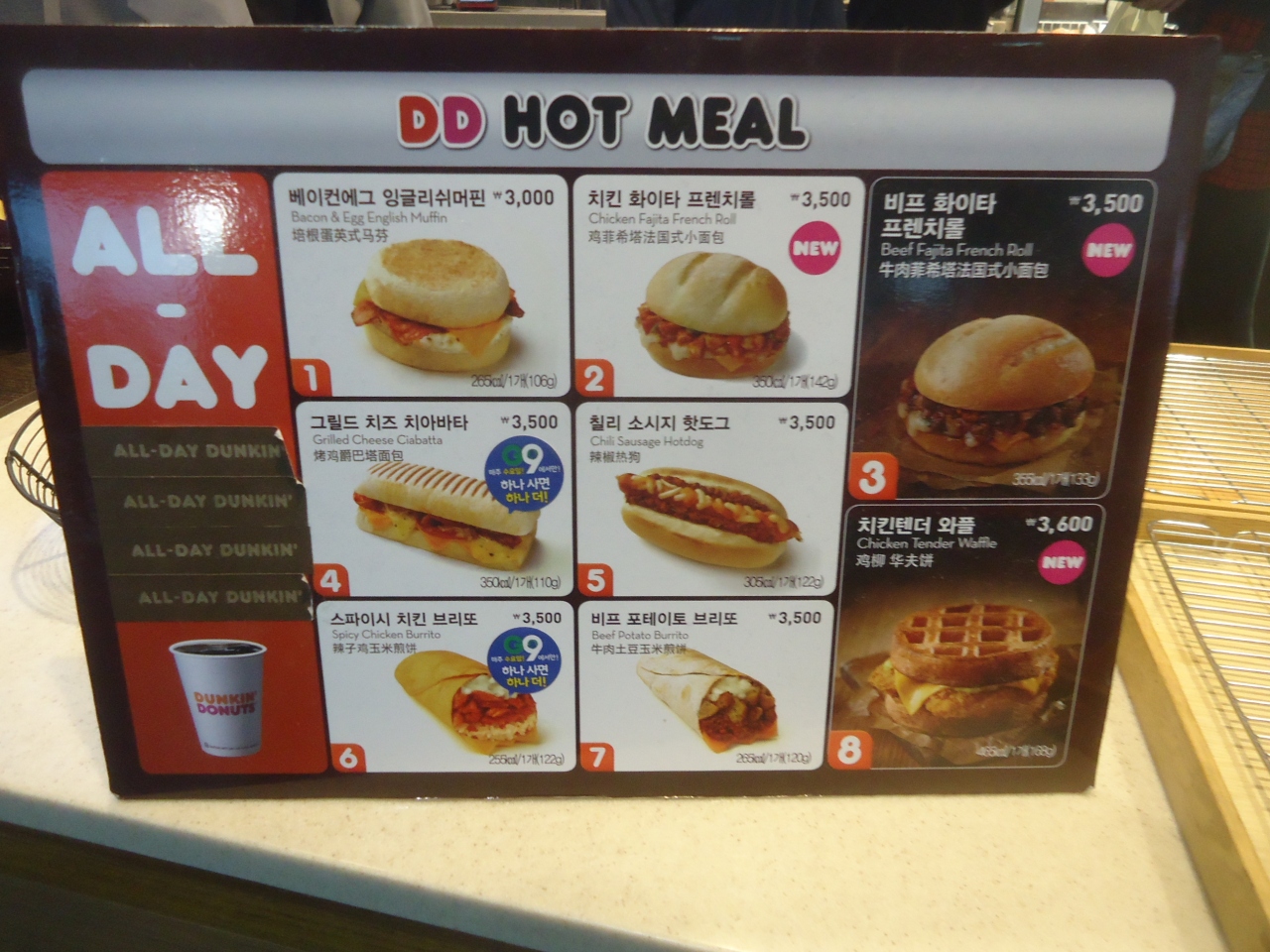 ダンキンドーナツの名の通りドーナツ類が充実してますが、この店はサンドイッチ、パニーニ、ブリトー、ホットドッグ類も充実。ホットコーヒーとセットで買っていくのが普通のようです。
