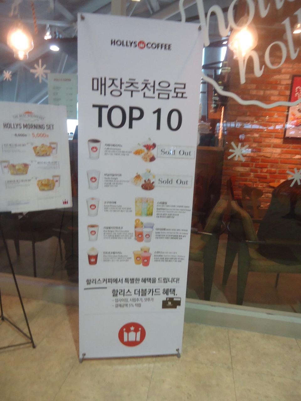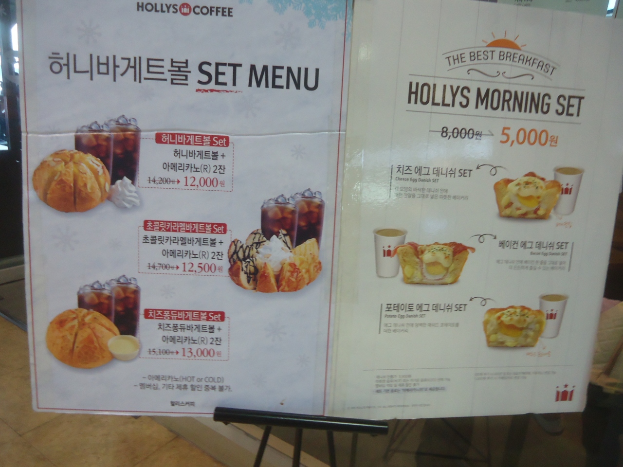 コーヒー類だけではなく軽食(パニーニ等)、デザート類等比較的メニューが豊富なのですが、アメリカーノの値段が4,100ウォン、と日本人にとってちょっと高めな設定かも。なお、日本のコーヒー店のようにミルク(フレッシュ)が置いてある訳ではないので注意(シロップはあり/ミルク入りを希望する場合カフェオレ等を頼むのが普通のようです)。