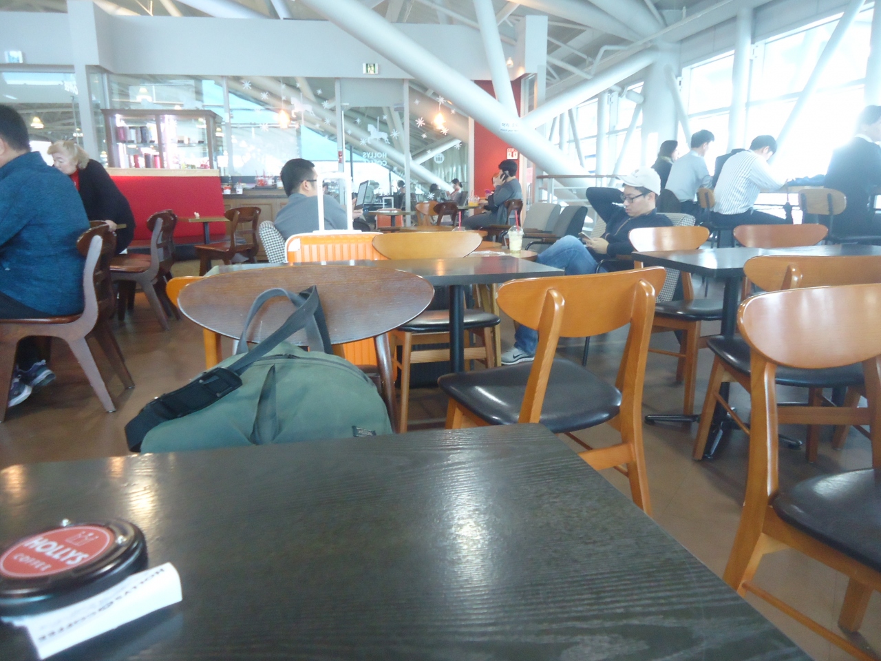 釜山金海空港国際線ターミナル3階にあるコーヒーショップ。このチェーンは韓国国内全土に店舗があり老舗のひとつ。金海空港内はゆっくり出来る喫茶店が少なくこの店は貴重な存在。出発前の日本人の利用も多い模様。