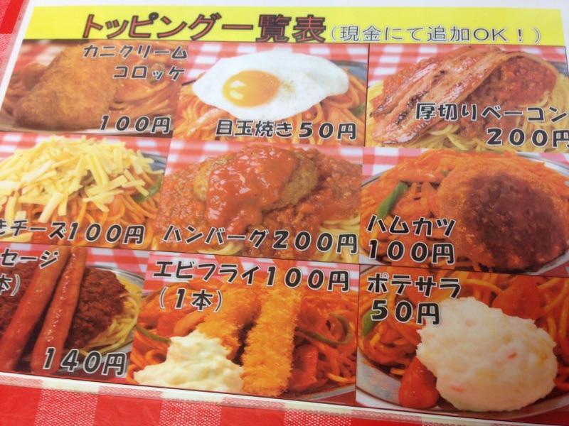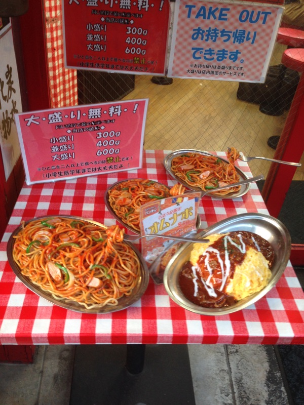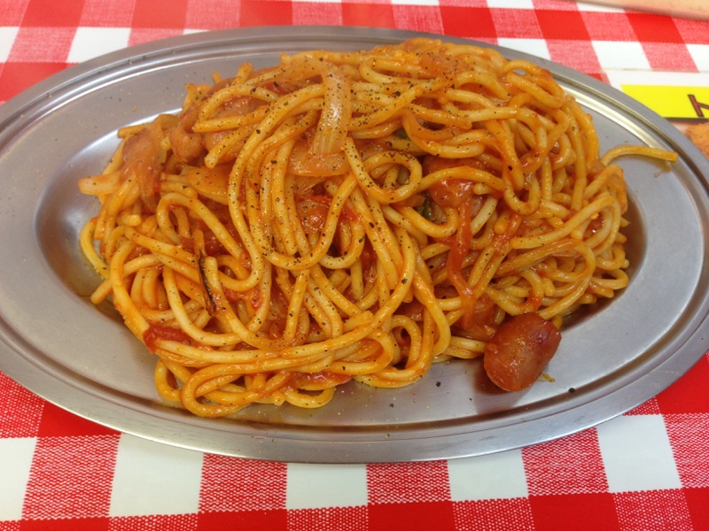 メニューはナポリタン、ミートソースが中心。粉チーズ、辛オイルはかけ放題。スパゲッティの小盛(300g)、並盛(400g)大盛(600g)は同料金とガッツリ向け。ナポリタンを注文しましたが、味は懐かしい味。昔の喫茶店の味がしました。ただし量が多いので最後は飽きるかも。- 旅行時期