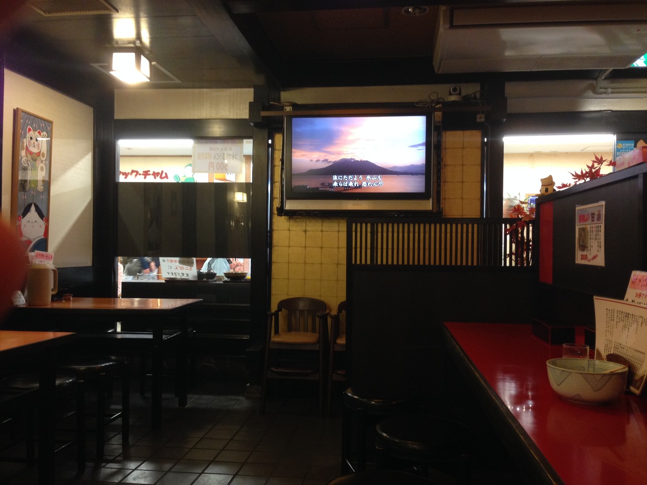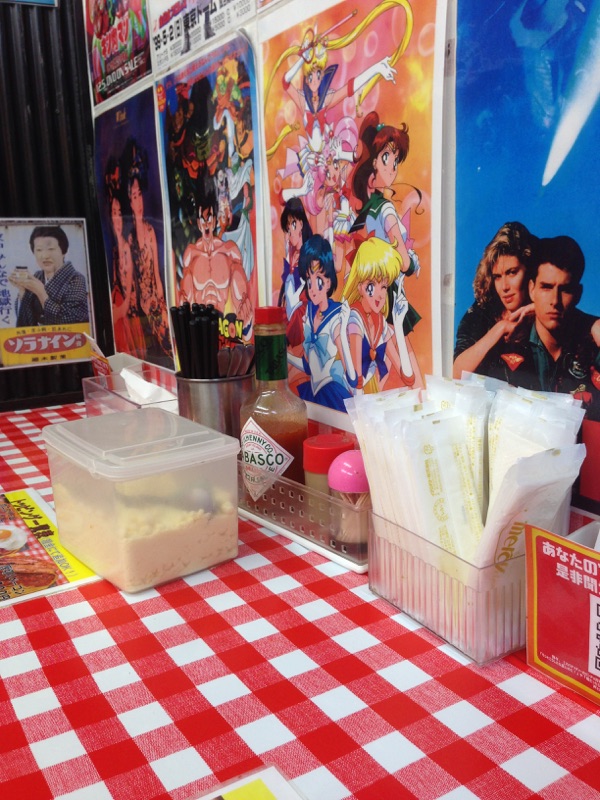 店内は1980年代から90年代の映画やドラマのポスターが貼られていつ少し落ち着かない感じ。しかしBGMもその時代のJPOPが流れていて懐かしい感覚に。