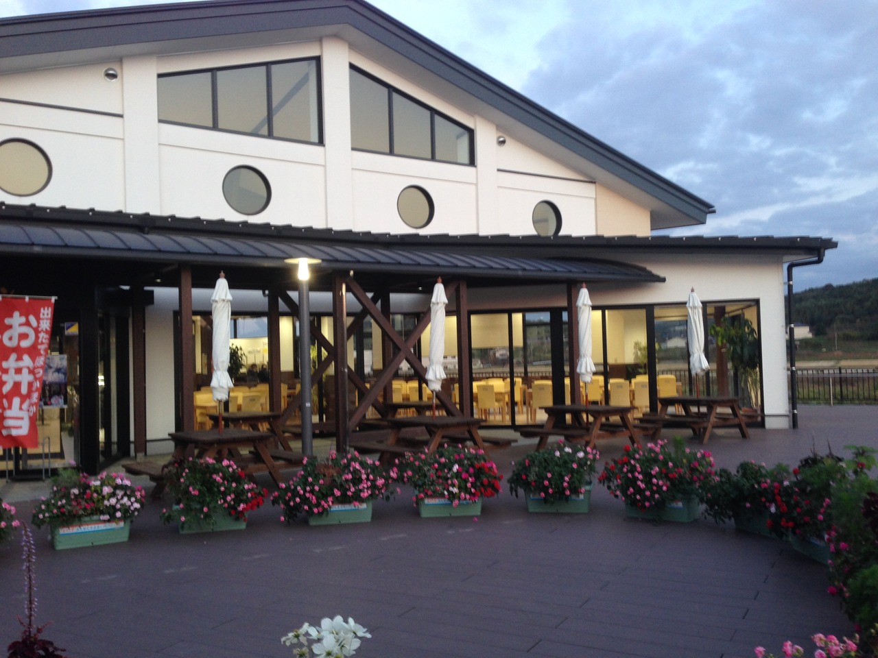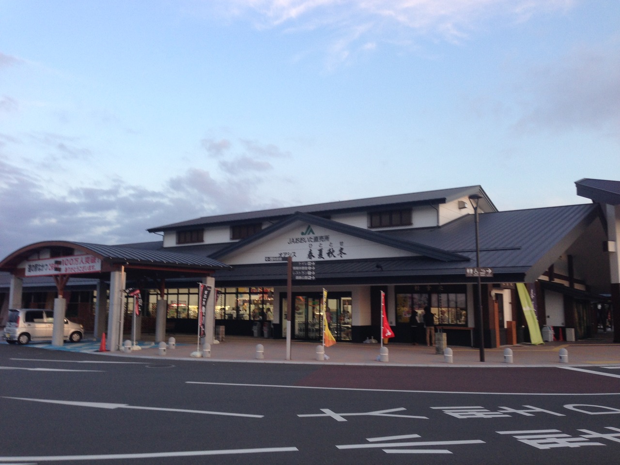 建物は情報休憩室、レストラン、JAの3つの棟に分かれていてそれぞれ木を多用した建物は落ち着く感じ。