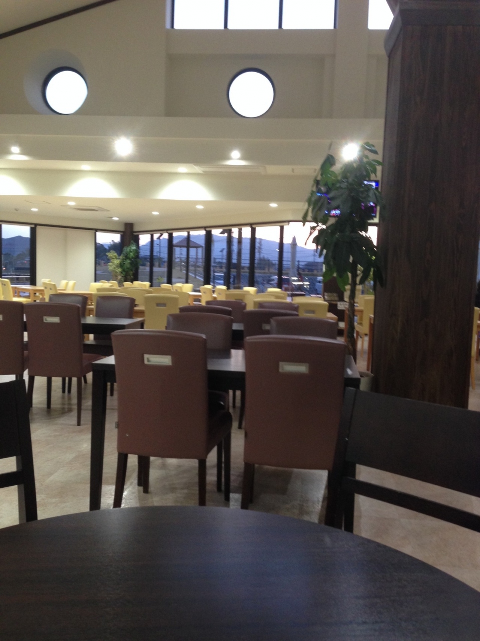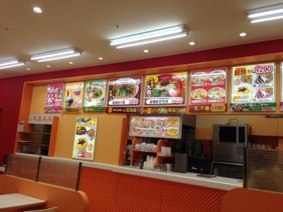 イオン1階のフードコート内にあるものの店舗は独立しており、店内には路面店と同様のテーブル、座席があります(フードコートで食べることも可能)。また喫煙席は壁で仕切られており禁煙、喫煙双方に配慮した設計。