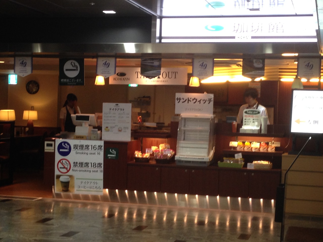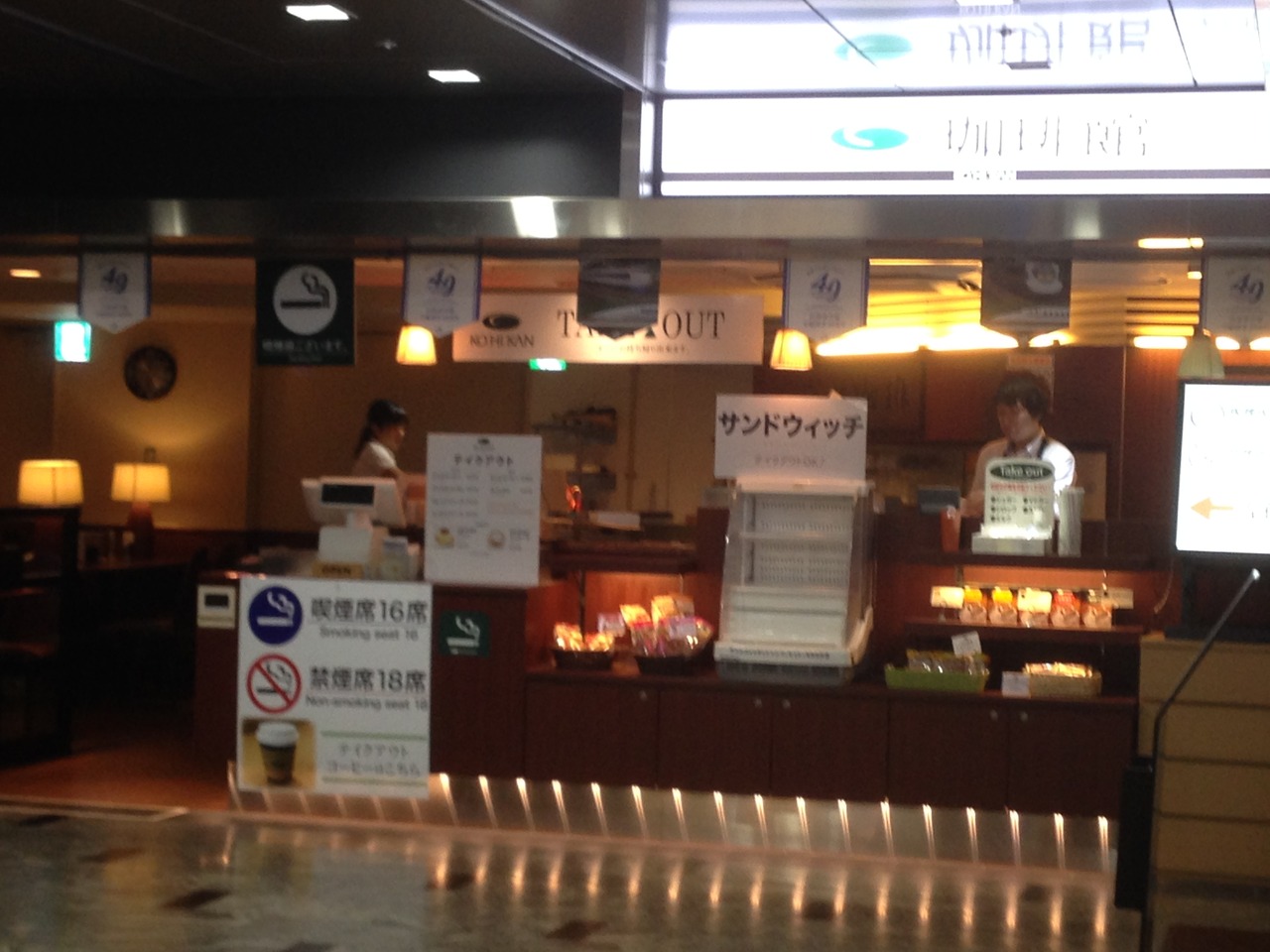コーヒーの他にサンドイッチ類もあり、軽い食事にも利用可能。また、テイクアウトコーナーがあって、本格的珈琲を買って新幹線に乗ることも可能。- 旅行時期