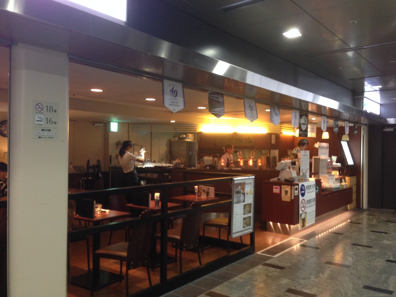 新幹線博多駅構内にある珈琲館。新幹線の乗車券を持っていないと入れない場所(つまり改札内)にあるため