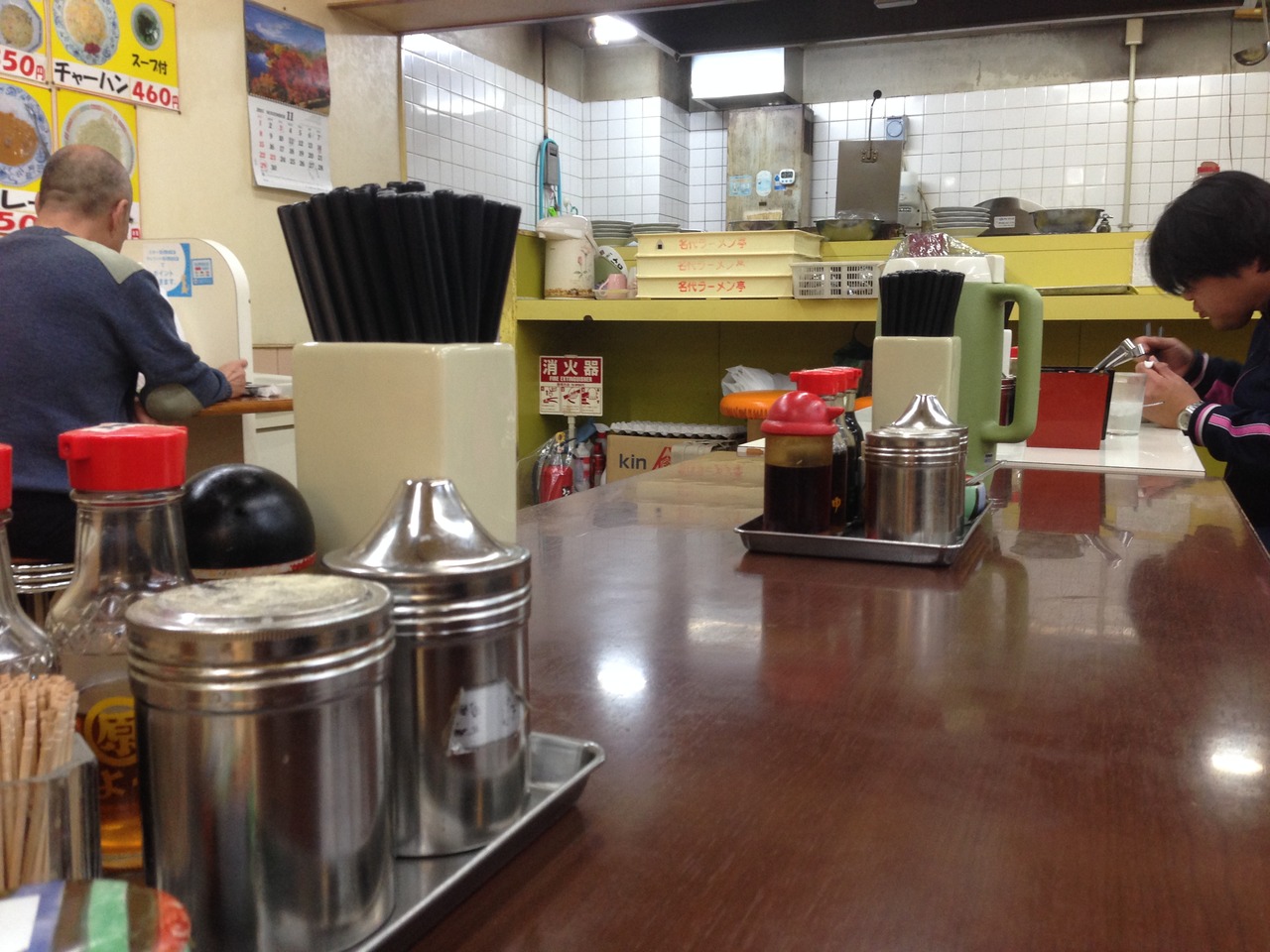 お店は昔ながらのラーメン屋さんの雰囲気。端っこに野菜の段ボールが置いてあったり懐かしい雰囲気。