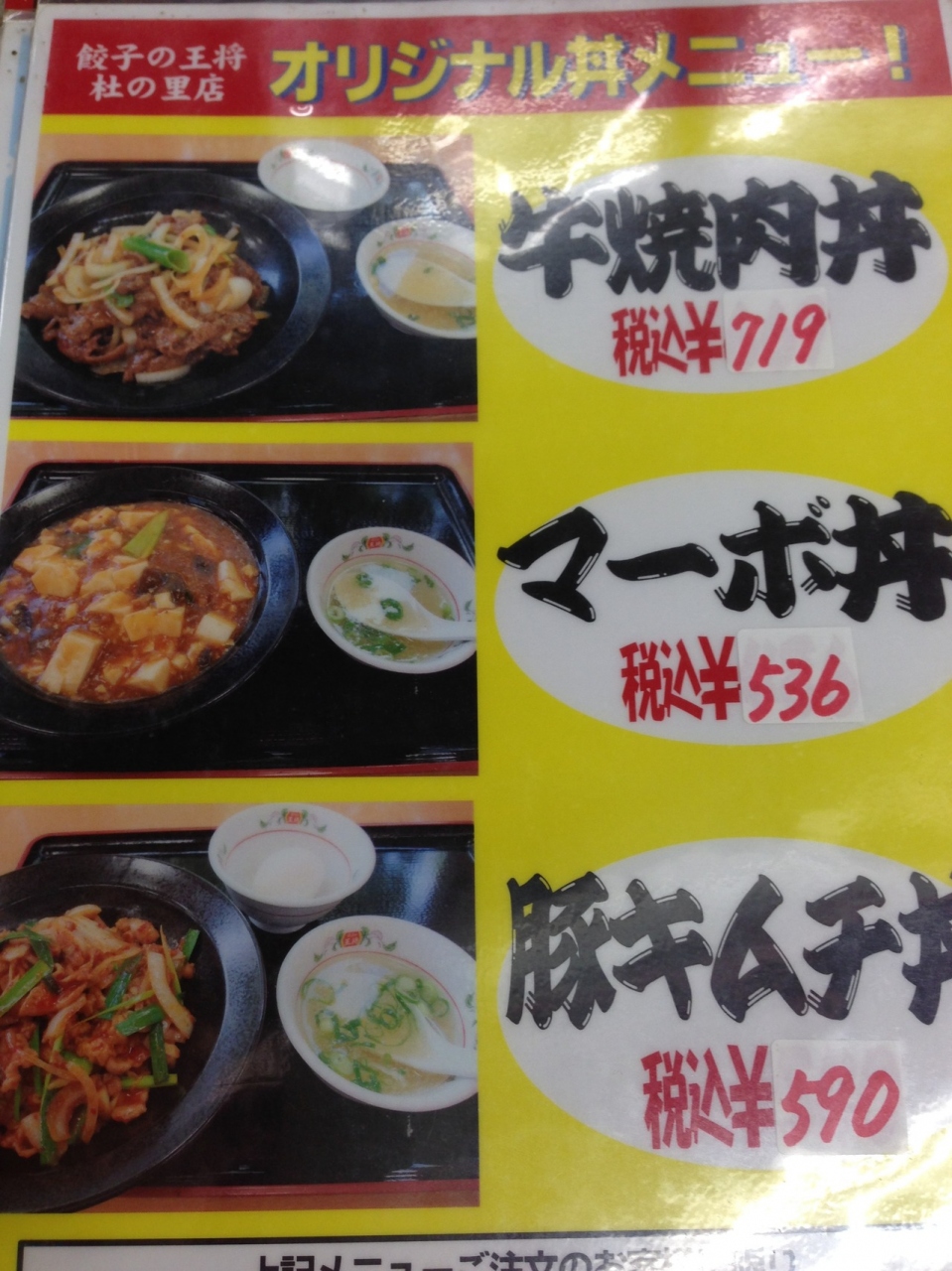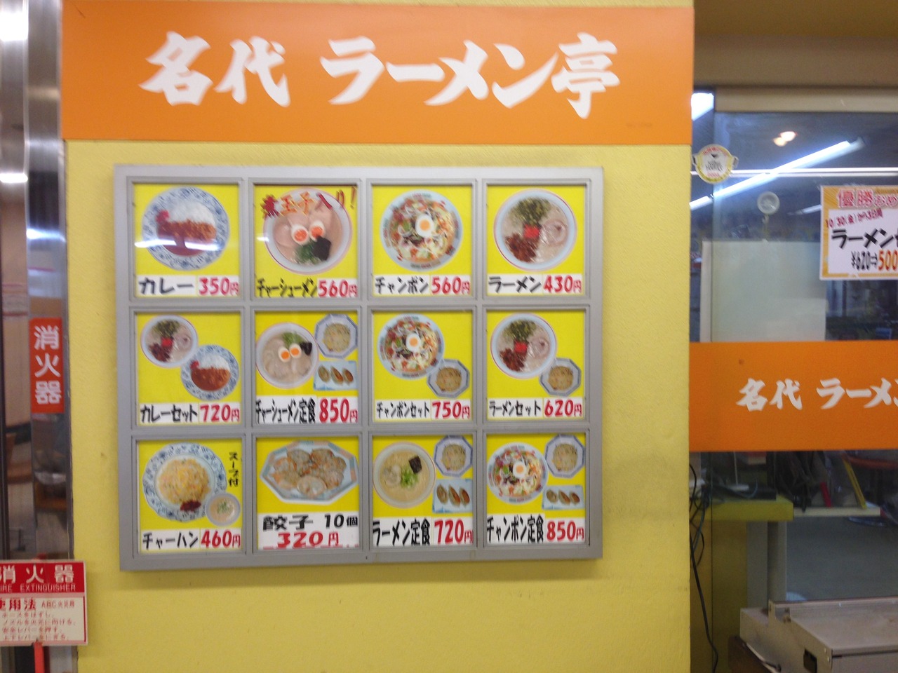 メニューはラーメン、餃子、ちゃんぽん(焼きちゃんぽんもあり)に加え丼物もある模様。