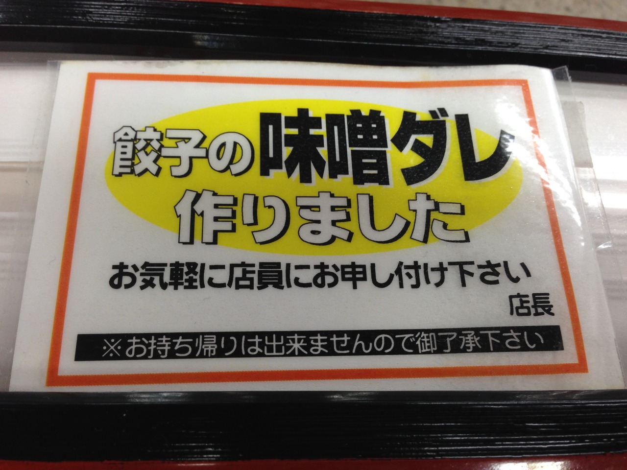 ボリュームのあるメニューが多い。餃子の味噌ダレあり
