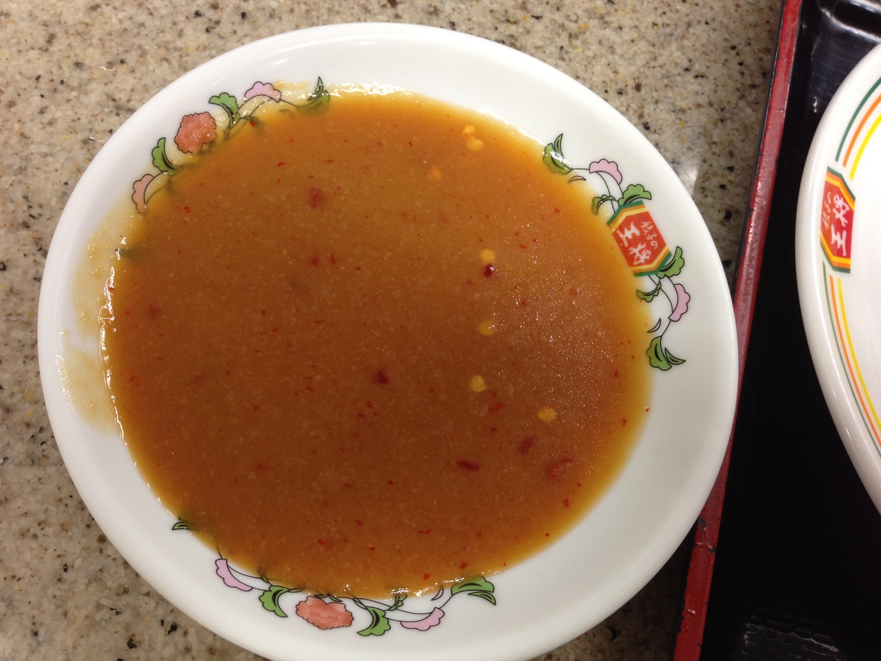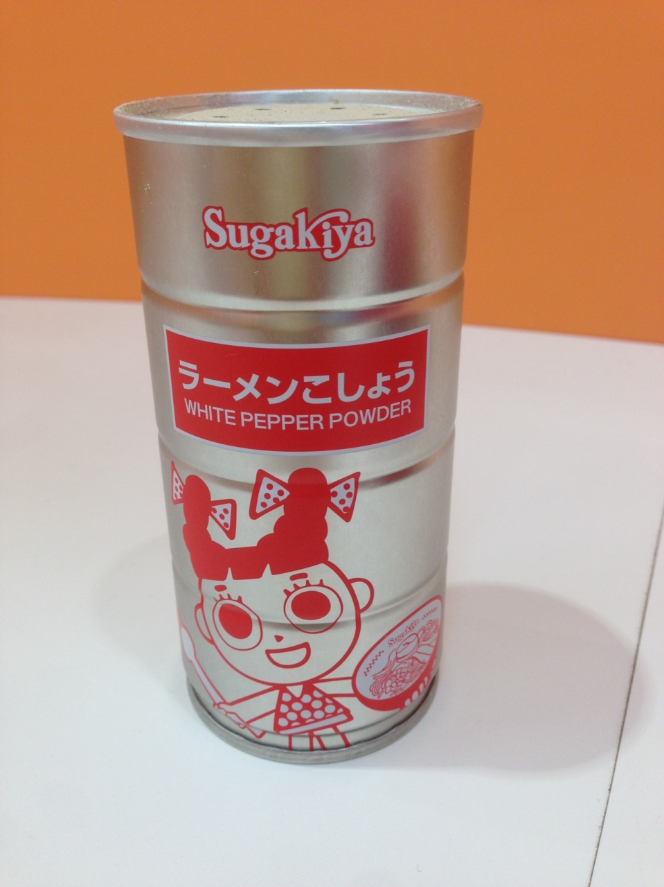 スガキヤラーメンはいつもの味。ラーメンフォークが入っていましたが食べづらいので箸を借用。胡椒にもスガキヤのキャラクター(スーちゃん)が描いてあります。