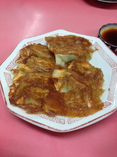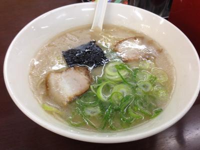 ラーメンは濃厚豚骨、でも臭みはなくあっさり系。麺は硬め、替え玉なし(その代わり大盛あり)、博多ラーメンではおなじみの紅生姜や高菜の漬物、白ごまといったものもなし。これが北九州ラーメン(北九ラーメン)の標準スタイルだそう。また、餃子は茶色い羽根があるがやわらかい感じの懐かしい味。
