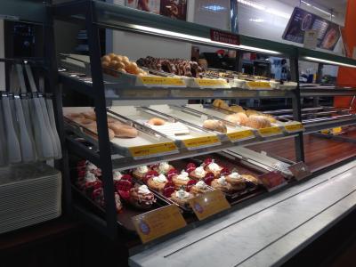 日曜日の夕方5時過ぎに伺ったのですが、販売している商品の種類が少なく、残念。ドーナツ陳列棚の3分の1しか商品が無く、当然選択肢も少ない。日曜日の夕方でフードコートは比較的人が多い時間だっただけにもう少し商品を充実させておいても良かったのかも(店員が少ない訳でもない)。- 旅行時期