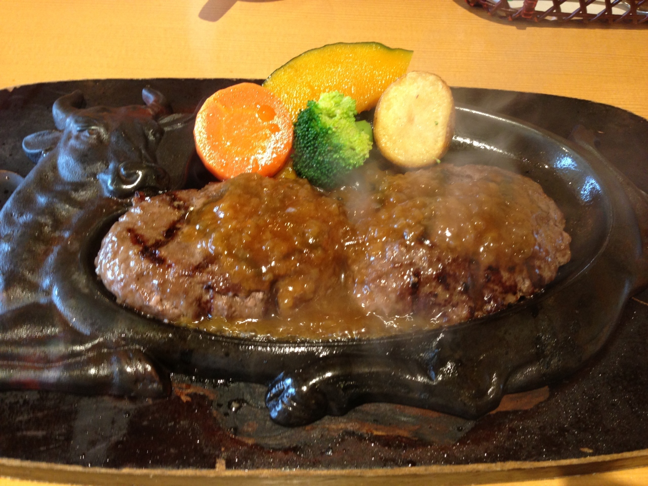 店は一軒普通のファミレス風ですが、味は全然上!。オススメはゲンコツハンバーグ(250グラム)。店員が目の前で半分に切ってくれます。ソースをかけると鉄板から「ジュー」という音とともに肉汁が飛びます(笑)。店員の方も教えてくれるのですが、肉がまだ赤い状態で食べた方が美味しいと思いました。