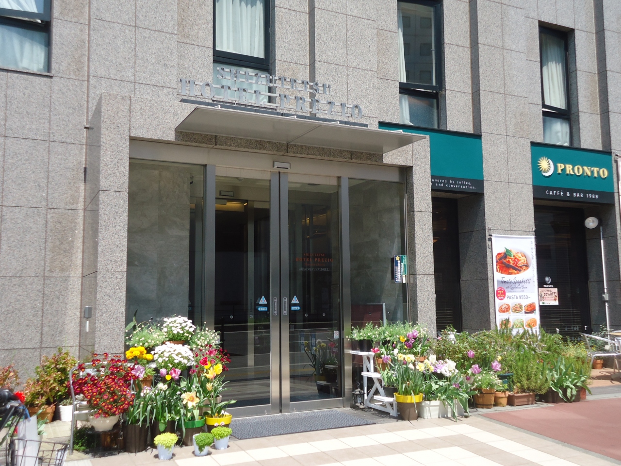 静岡駅北口で降りてすぐに見えるのですが、信号を渡るため遠回りする必要があります(地下道を降りてゆくことも可能)。同じ静鉄ホテルプレジオでもこちらは県庁・市役所や繁華街に近く、食事や買い物に便利。玄関は花が置いてあってさわやか。