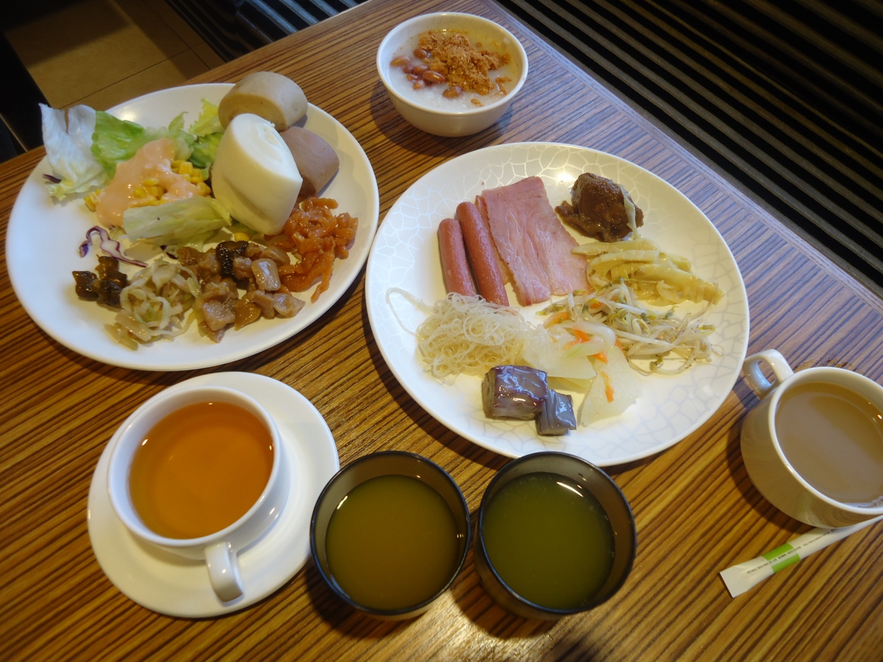 地下は日本でもおなじみの大戸屋が入っており、朝食付きの場合こちらで食べる形。それでは日本と変わらないので、すぐ近くにある晴光商圈(夜は雙城美食街=夜市)で食べるのがオススメ。また、コンビニ(ファミリーマート、セブンイレブン)、ファーストフード(マック、モス)、スタバなどがあり、そこで食べても良いかも。