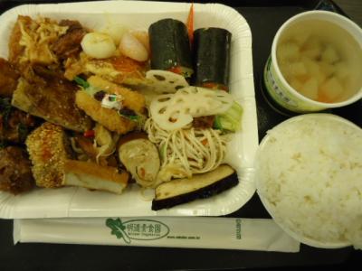 精進料理はさっぱりとしたイメージがありますが、ここは台湾。海苔と山芋で作った鰻もどきやグルテンで作った鶏唐揚げもどきなどボリュームがおかずもたくさんあります。