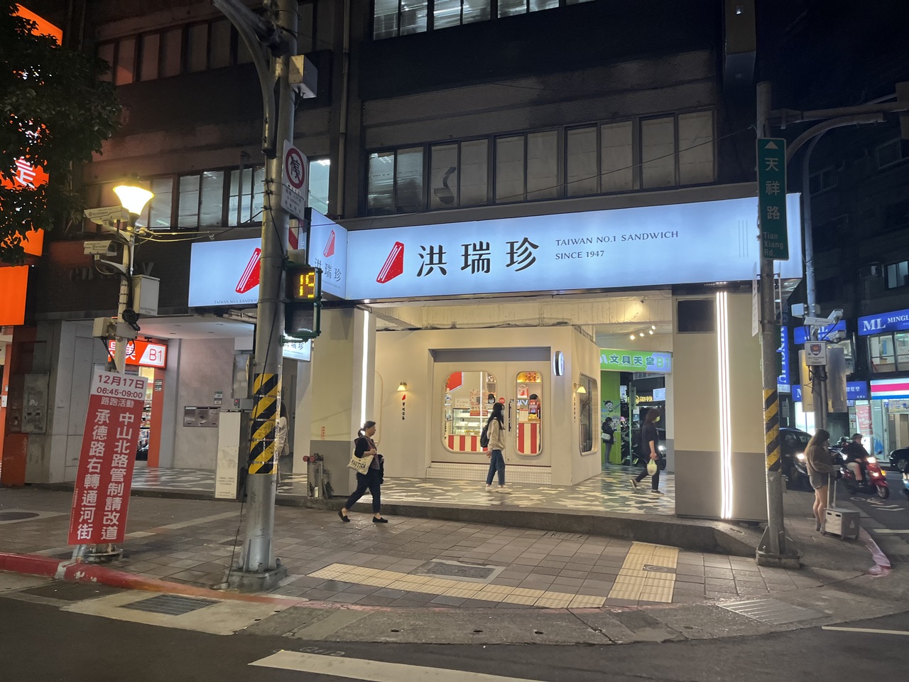 洪瑞珍(ホウレイゼン)の名の三明治店は色々あるが、色々な流れがあるとのこと。とは言え台北ではお馴染みになりつつある白地に小さくサンドイッチが書かれた店が、パンがふわふわさでは一番かな。