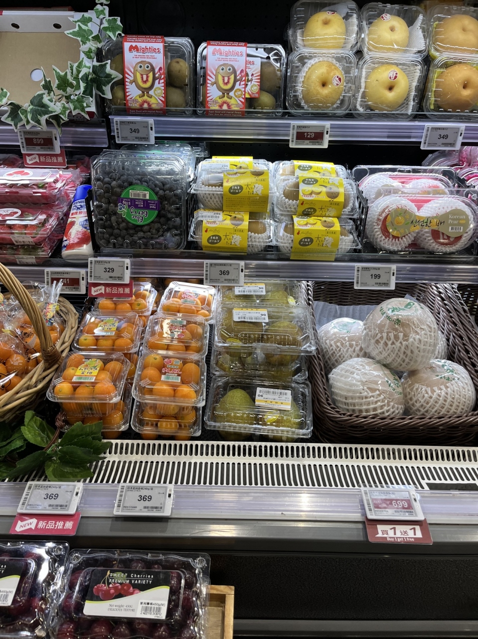 「一応」高級スーパーとしたのは店舗によっては高級品以外の品揃えが充実している店舗もあるから。看板は同じでも庶民的な品揃えの店もある。ちなみに美麗華百貨園地下の店舗はそれほど大きく無いが品揃えは高級路線である。