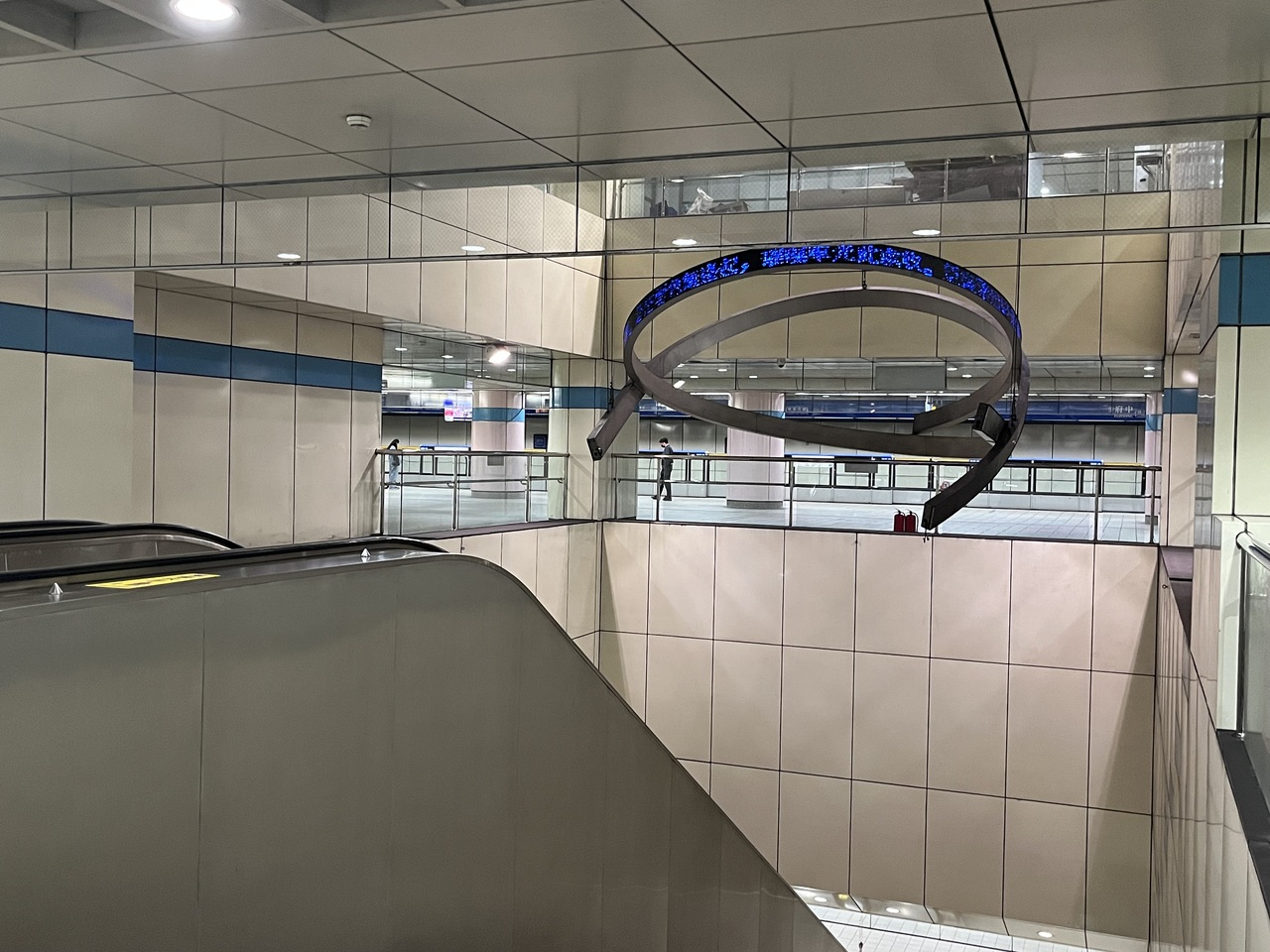 MRT文湖線は新交通システムの類だが、この2駅は地下駅のための駅のイメージは地下鉄に近い。比較的広めのホームには飛行船のオブジェがあって、これから出発するイメージがある。