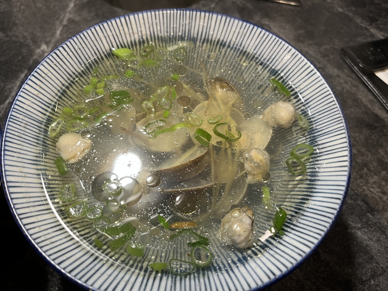 アサリのスープは優しい味。生姜と青葱があっさりした味にパンチを加えてくれる。