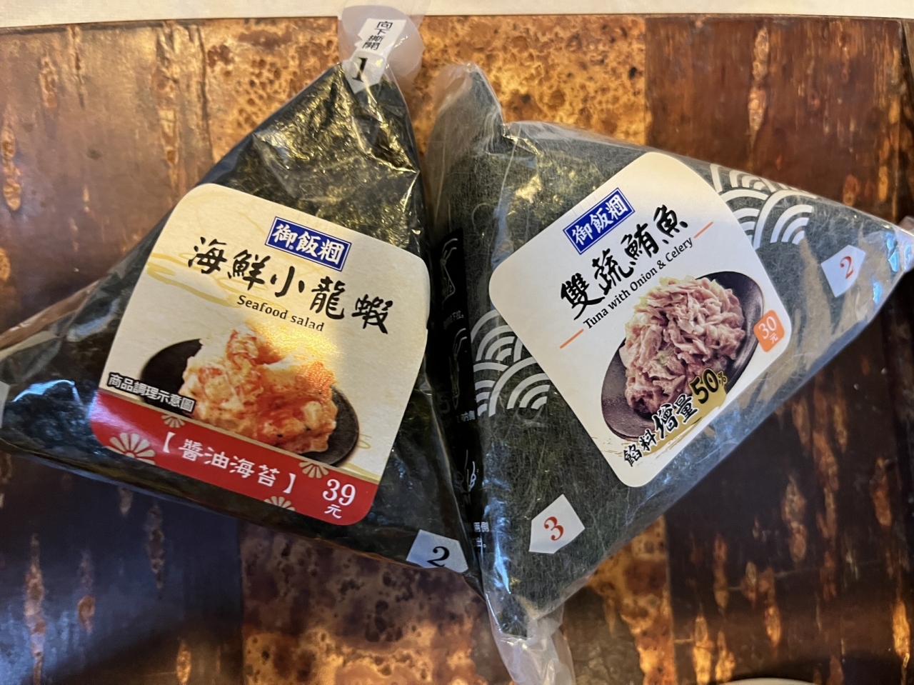 海鮮小龍蝦(Seafood salad)、雙蔬鮪魚(Tuna With Onion & Celery)を購入。海鮮小龍蝦は海老ととびっこをマヨネーズで和えたものが具材。海苔は味付け海苔なので、最後まで飽きずに食べられる。また雙蔬鮪魚はいわゆるツナマヨだが、日本のツナマヨには入っていない玉ねぎがアクセントになっていてこれも美味しい。