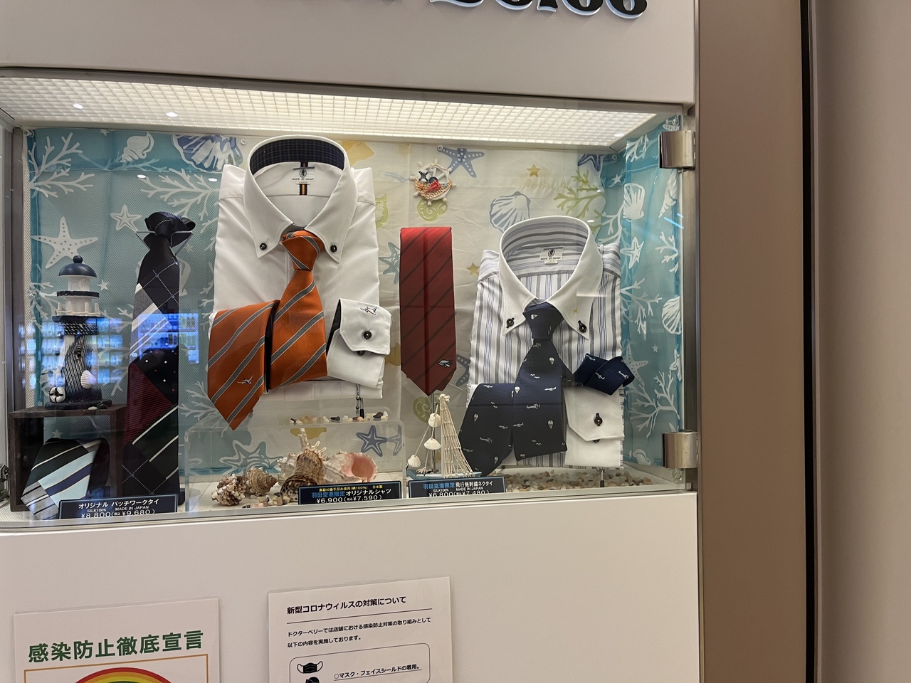 羽田空港店限定の飛行機のワンポイントが入ったシャツやネクタイ、マスクなどがあり、出発の際到着口に降りて行く価値あり。- 旅行時期