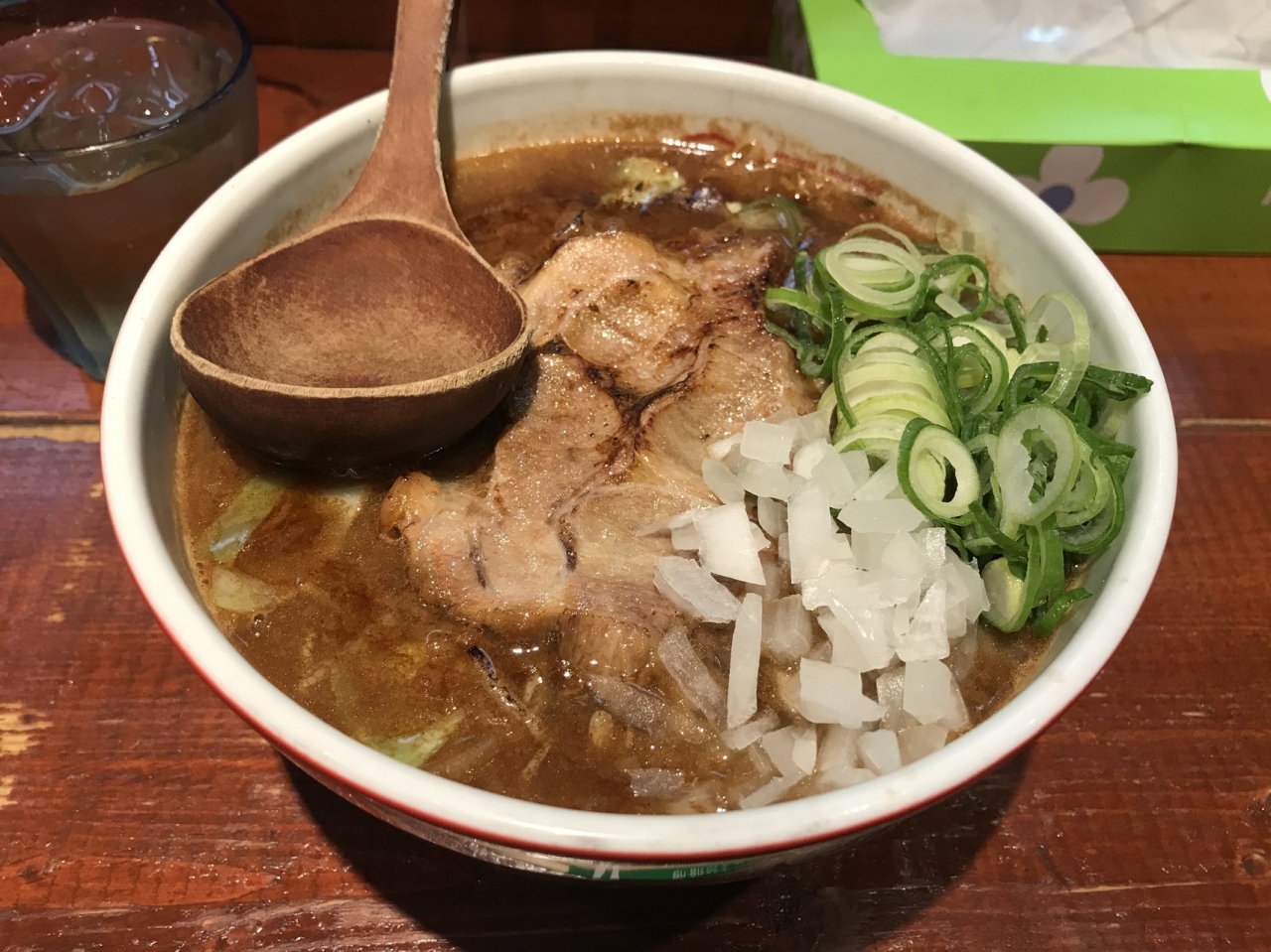 スープは赤味噌ベースのスープは濃厚でコクがある。麺がちぢれ麺なので、麺にスープが絡む。普通の鹿児島ラーメンも良いが、少し変化球があるのも良い。- 旅行時期
