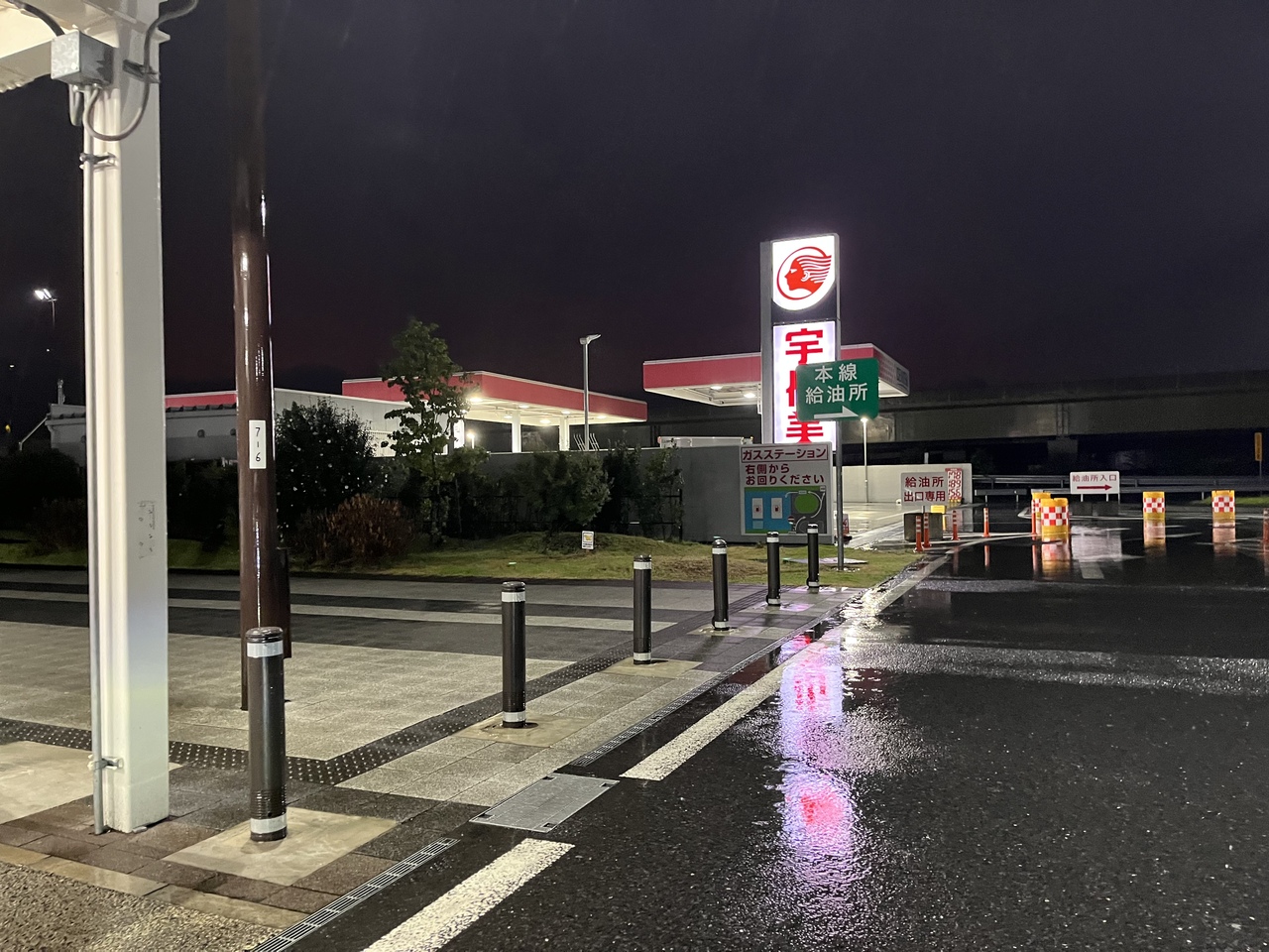 上下線(内回り・外回り)共用の施設になっていて、ガソリンスタンドも上下線共用なのは面白い。