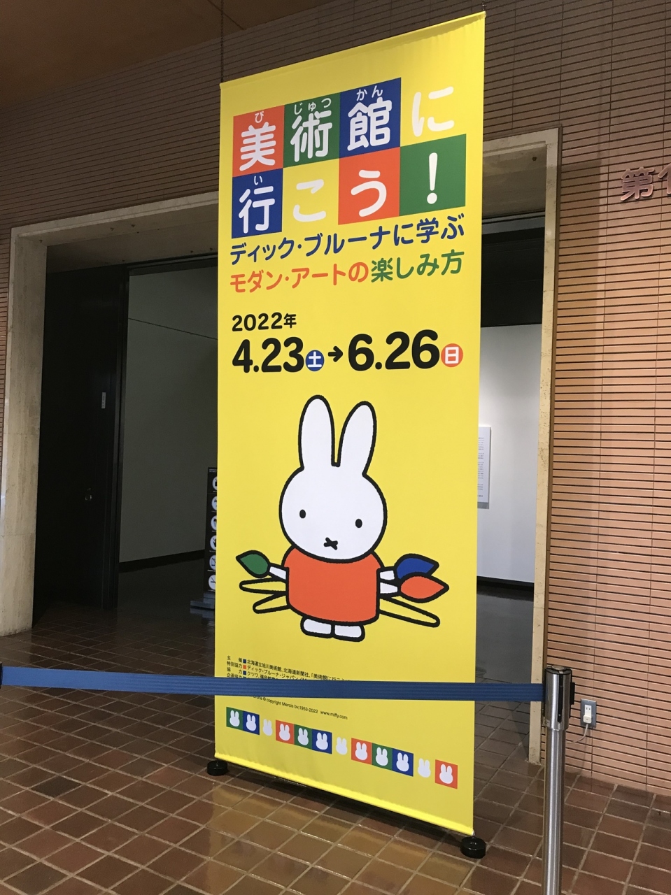 道北にゆかりのある作家の作品が多く展示されているそうなのだが、今回の目的は開館40周年を記念して開催されたミッフィー展(正式には『美術館に行こう!ディック・ブルーナに学ぶモダン・アートの楽しみ方』)。臨時のミュージアムショップもあって、普段は静かな館内が少し楽しい雰囲気に。久しぶりに子供気分に浸りました。- 旅行時期
