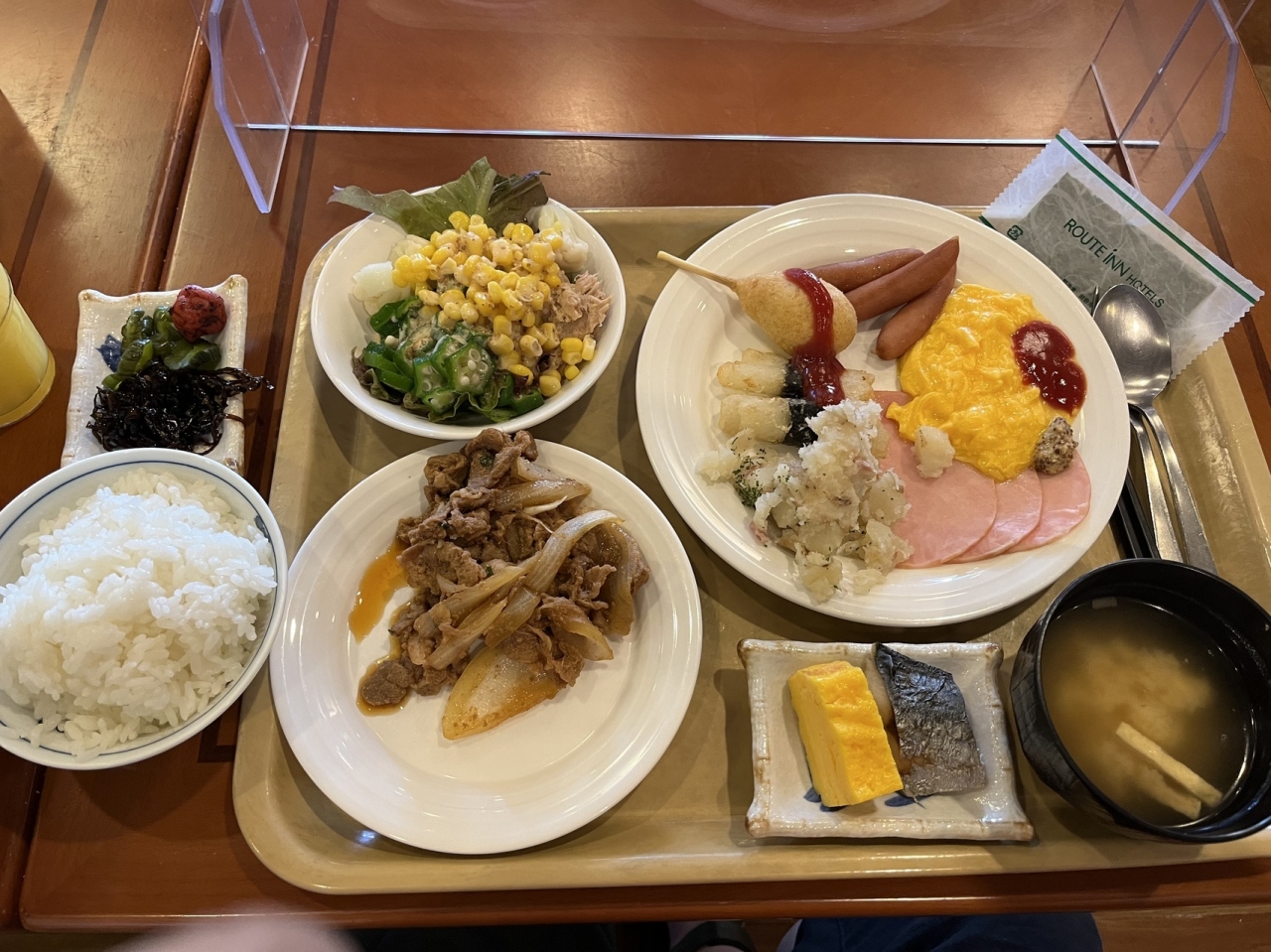1階にはラジウム人工温泉の大浴場がある。他のルートインも同じようなお湯ではあるが、長時間運転の疲れを癒せる。また、無料の朝食は一般的な和洋バイキング。ご飯が美味しいのでつい食べ過ぎてしまう。