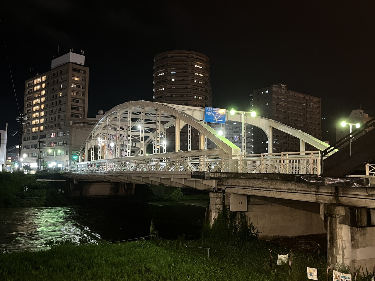 JR小倉駅から徒歩10分ほど、紫川にかかる勝山橋(石の橋)の手前にあります。本館と新館の間から小倉城が綺麗に見える。