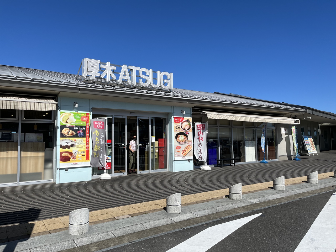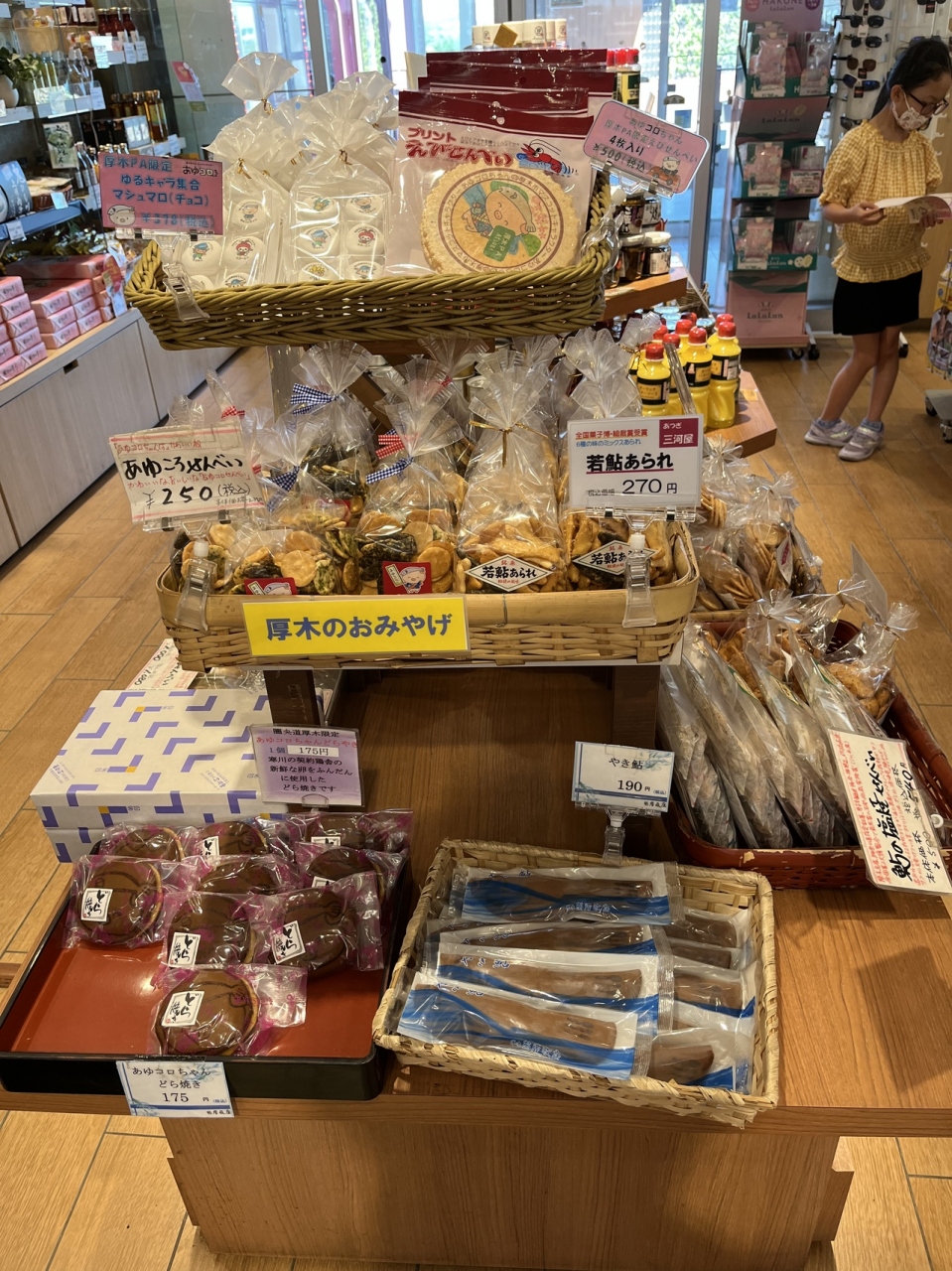 海老名JCTから東名下り線(静岡方面)に行く場合、海老名SAは利用できないため、海老名SA名物のメロンパンは売店で大きな売り場をつくって販売している。また鮎を使ったお土産が多いのは、鮎が名物の厚木らしい。
