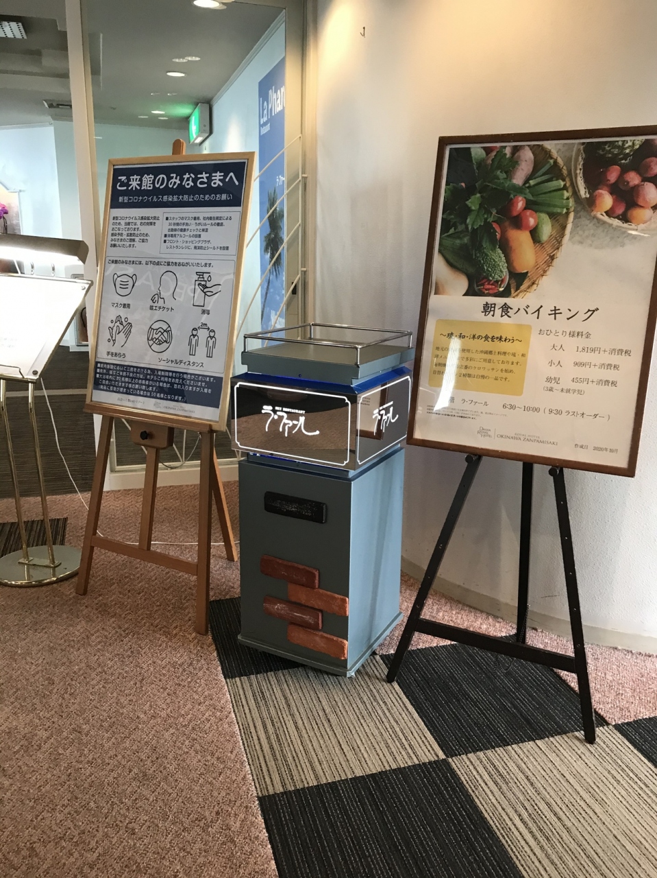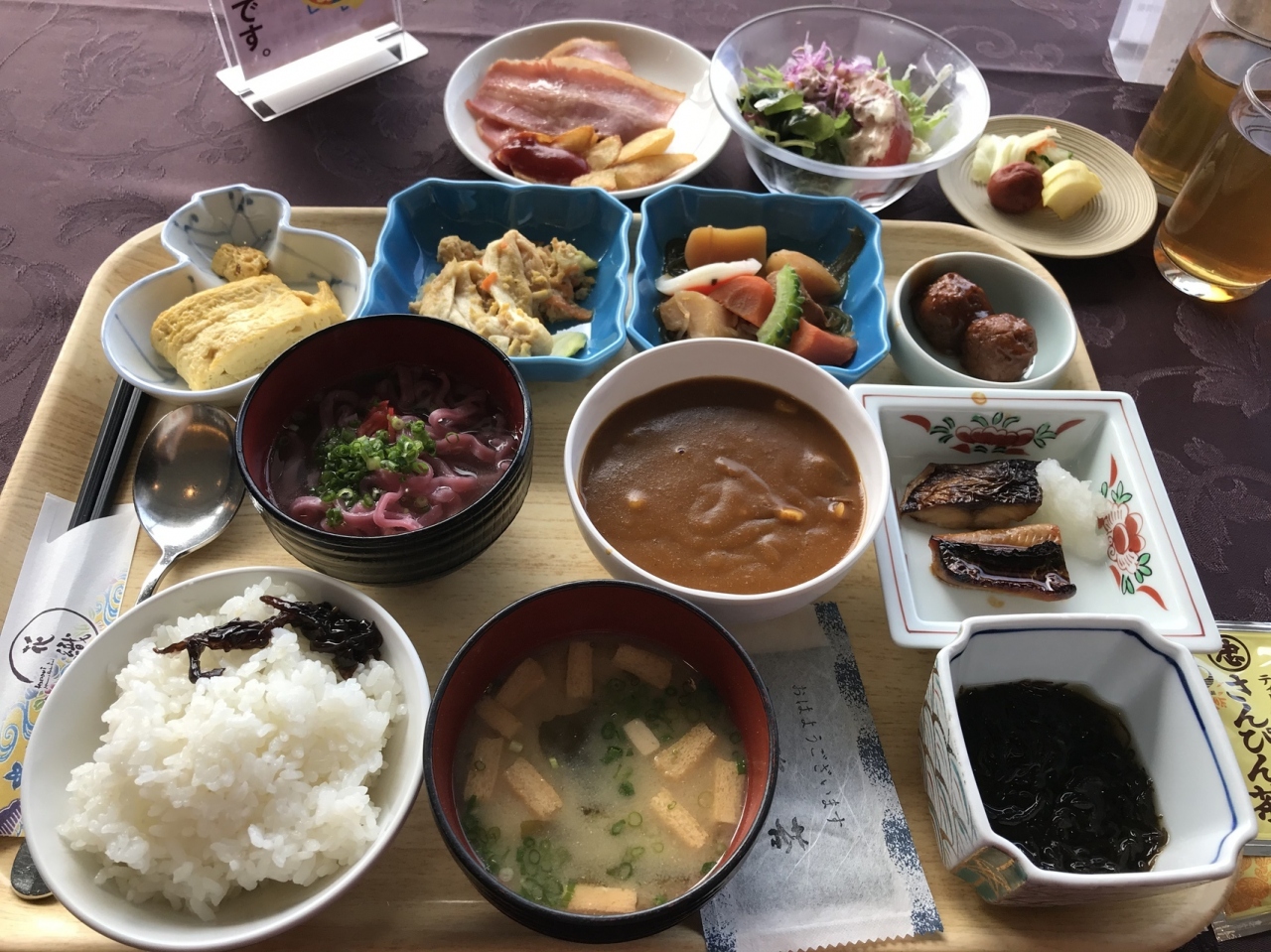 料理は和食、洋食に加え、フーチャンプル、沖縄式の煮物、もずく、沖縄そばといった沖縄そばや紅芋が入ったバターやマンゴージャムなどもあった。