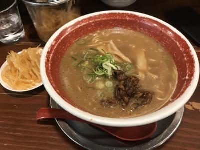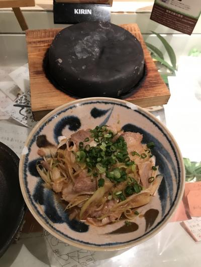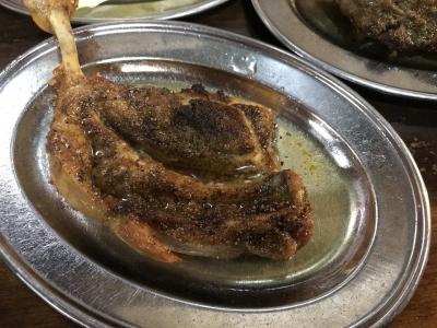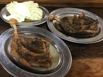 骨付鳥は『おや』『ひな』両方とも注文。ひなは皮パリパリ、中はジューシーで柔らかい。おやは皮はパリっとしているが、噛みごたえがあり、噛んでいくと鶏の味がどんどん出てくる。胡椒と塩味が効いた肉汁をまずはキャベツ、締めにおにぎりにつけると最高である。