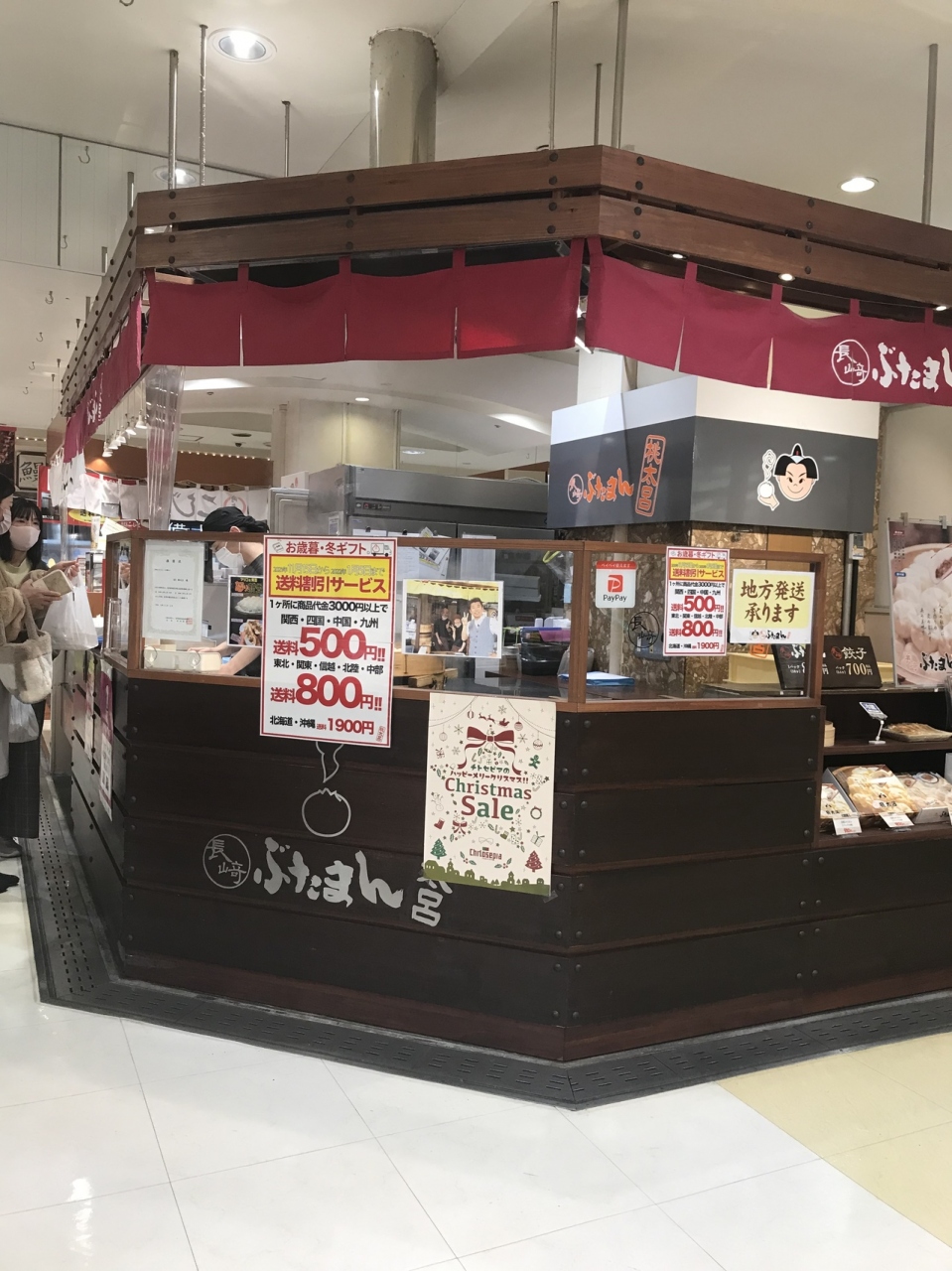 店名の通り桃太郎がキャラクターで、長崎では有名な豚まん屋さんとのこと。そう言えば、九州・長崎物産展で見かけたことがあるかも。