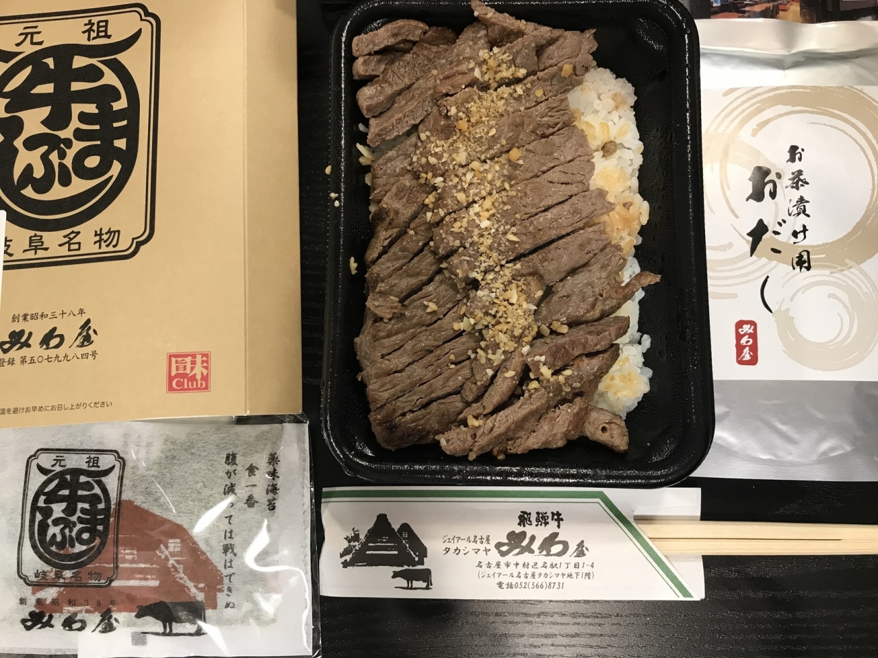 飛騨牛まぶしをテイクアウト。他に黒毛和牛や豚まぶしもある。