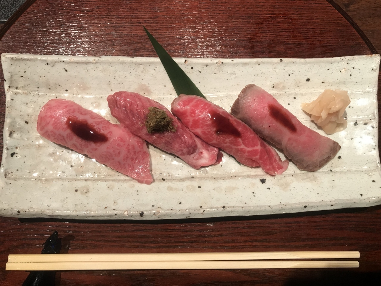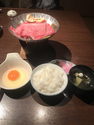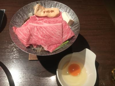 その後、近江牛の握り、メインのすき焼きが。近江牛の赤身、脂の旨味を同時に味わう感じ。おなかも満足したが気持ちも満足であった。