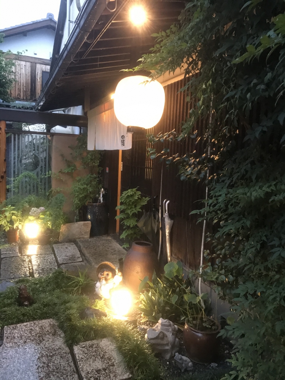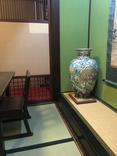 城下町の大きな古民家のようなたたずまいの建物には大きな暖簾が。暖簾を抜け、建物に入り、落ち着いた個室に案内。
