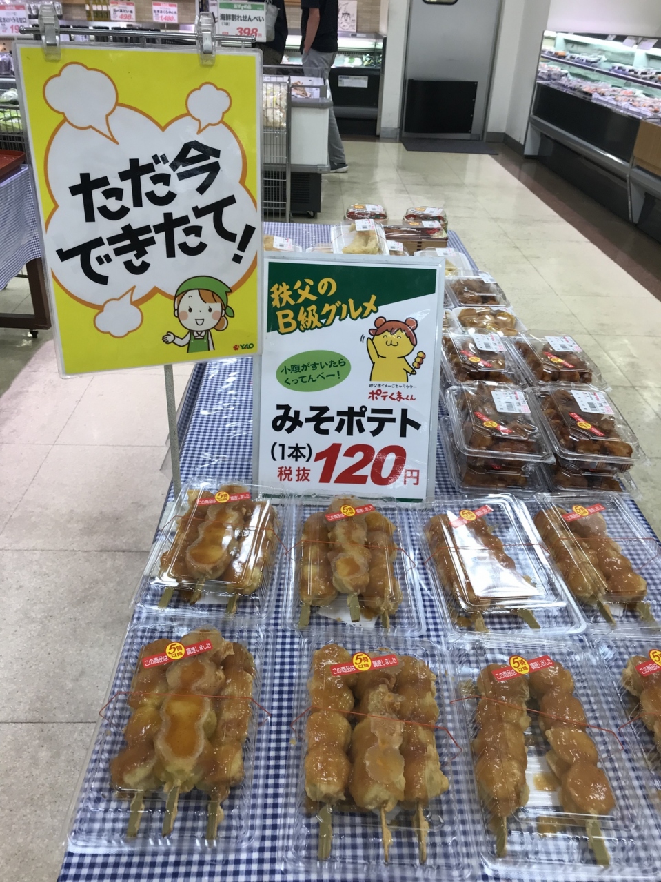 観光客に嬉しいのは1階の食料品売場。秩父の地酒(秩父錦)、B級グルメ「味噌ポテト」、秩父産の野菜を使った漬物やキムチが充実。うどん、そば、コンニャク、和菓子と言った秩父名産品は土産店で買うよりも安く、地元の方おススメ商品が手に入る。それと地酒である秩父錦は専門コーナーがある。