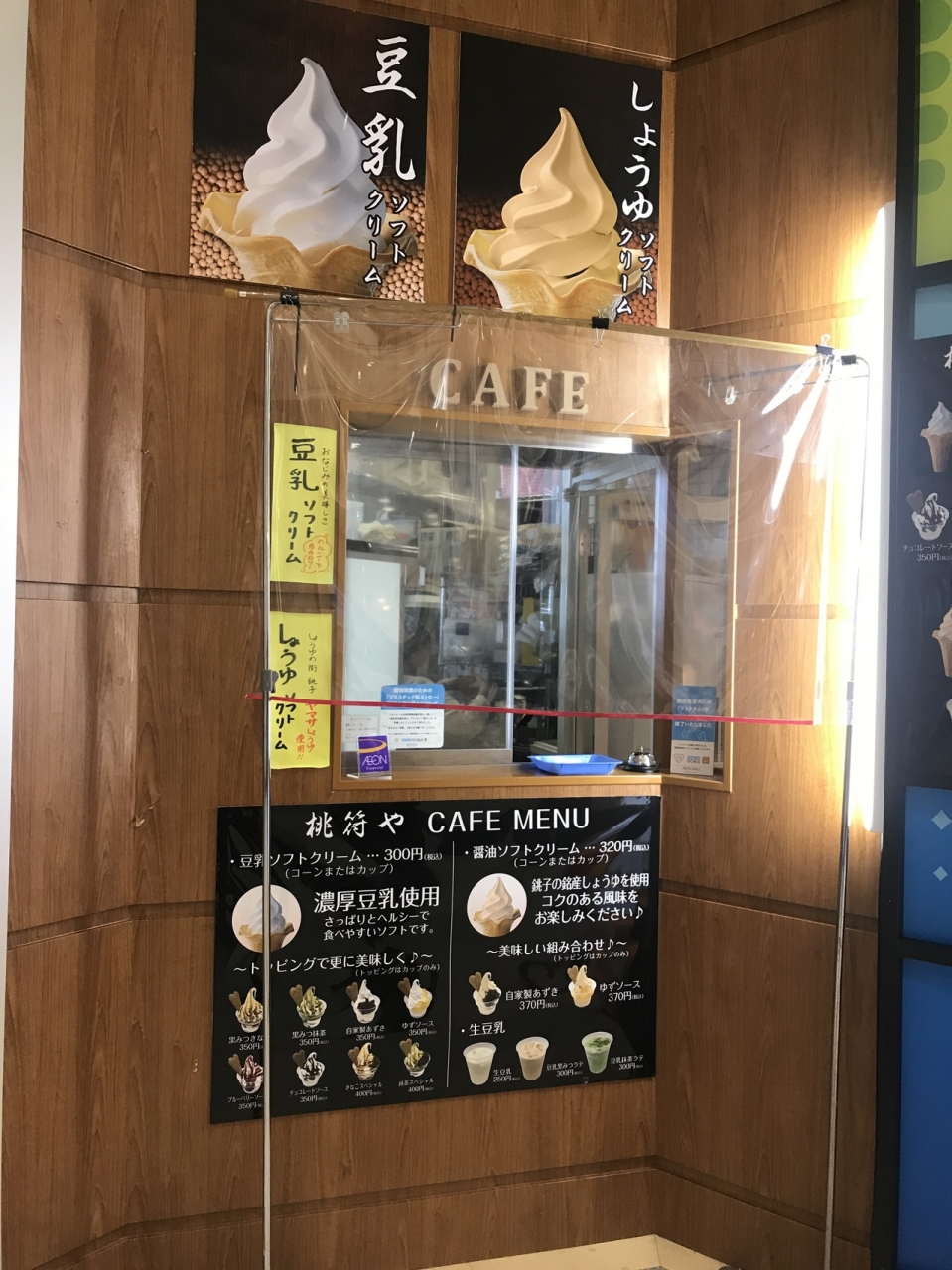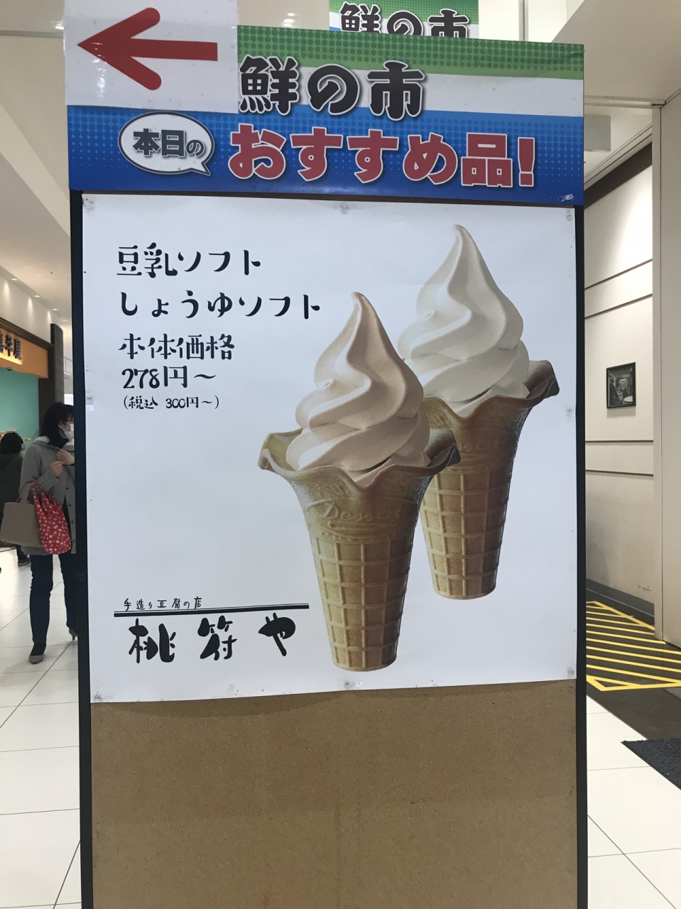 お土産を買いに帰りに立ち寄ったイオンモールの中に醤油ソフトクリームを打っている店を発見!思わず入店。