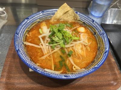 トムヤムヌードルは酸っぱ辛さの中に海老の出汁があって美味しい。トッピングされてるタイ風さつま揚げやフィッシュケーキ(つみれ)も美味しい。麺はフォーに近いライスヌードルでつるつるいける。辛さもちょうど良い。