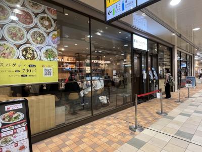エキュート品川駅の店は場所柄、お一人様が多く入りやすく、駅ナカロメスパが手軽に楽しめる。