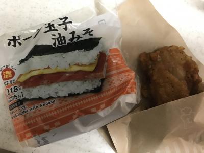 飛行機出発前にポーク玉子おにぎりとサンチキ(フライドチキン ドラム)を購入。サンチキはローソン沖縄の合弁先であるサンエー(スーパー)の人気商品で本土のチキンと少し味が違う感じ。