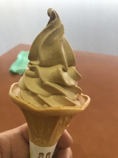 醤油ソフトクリームはもちろん地元のヤマサ醤油を使用。口に入れると牛乳の香りと醤油の香りが一緒に広がる。醤油のしょっぱさとソフトクリームの甘さはみたらし団子の感じもする。良いコラボである。- 旅行時期