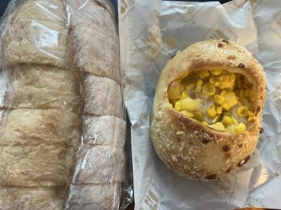 比較的遅い時間でも色々な種類があるのだが、朝食用にシンプルなバタールとコーンとチーズのパンを購入。バタールは北海道産の小麦を100%使用。皮は硬いが中はふっくら。何もつけずにそのまま食べても美味しいし、スープやカフェオレとの相性も良い。またコーンとチーズのパンも北海道産の食材を使っているらしく、コーンの甘みを楽しめる。価格が比較的お手頃(バタールのハーフは140円くらい)なのも嬉しい。- 旅行時期