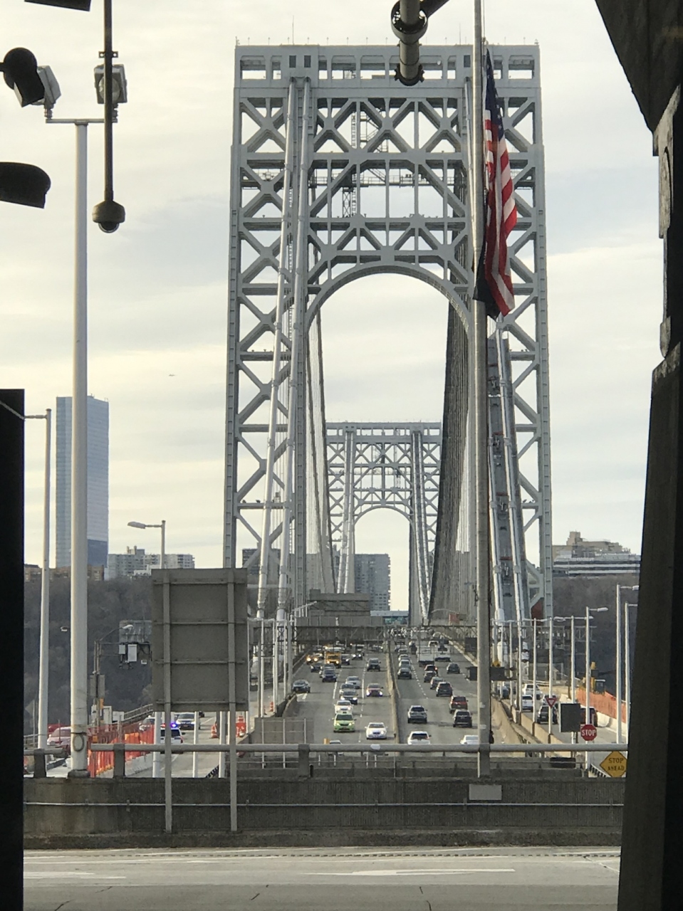 目の前のジョージワシントンブリッジを渡るとニュージャージー州になり、朝晩は通勤客が多い。