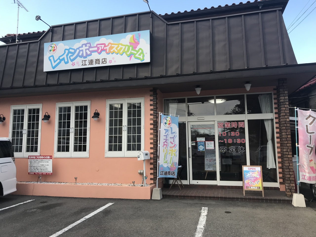 栃木県発祥・定番(他の都道府県では知られていない)のアイスだそうで、お祭りや運動会などの露店でも定番とのこと。また「レインボーアイス」「レインボーアイスクリーム」という名前はこの店の登録商標とのこと(Rマークがあった)。
